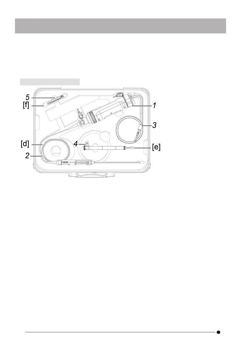 Run the cable of the rigid scope unit along the inside of the case [d] and roll it up twice.