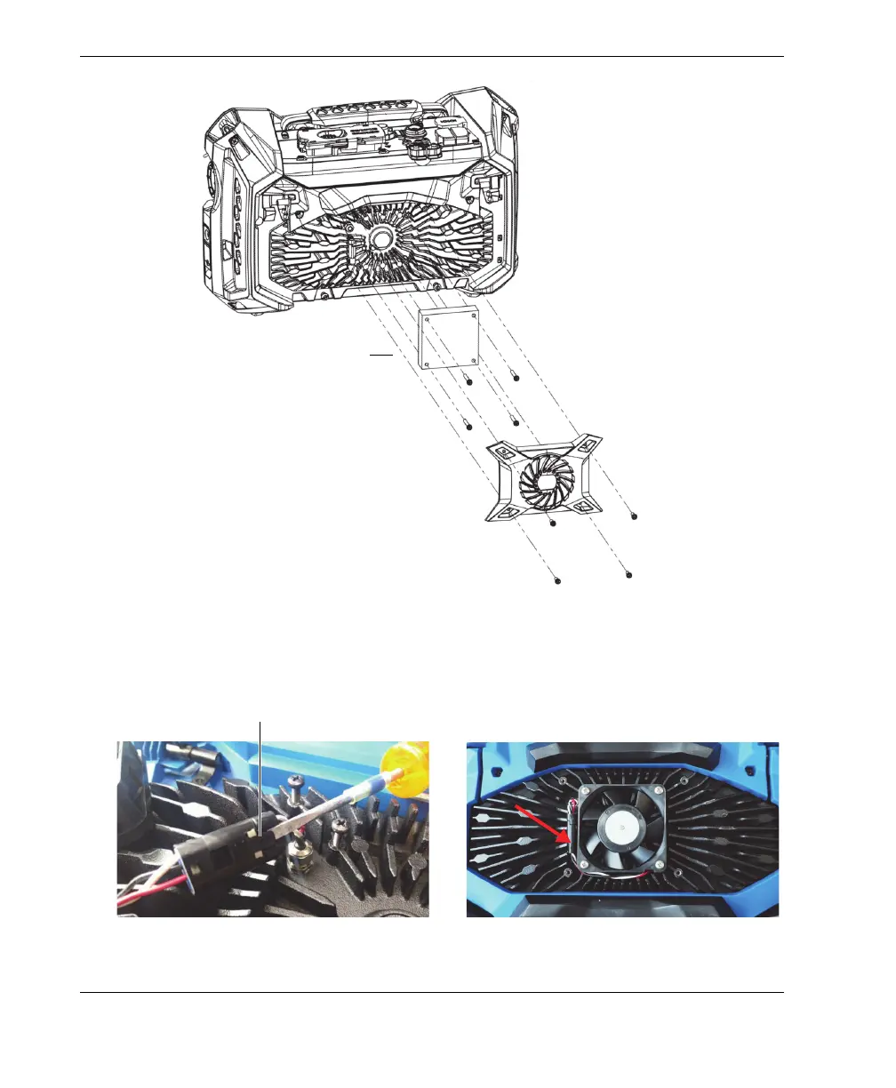 Figure 4-3 Fan cable disconnection (left) and final placement (right)