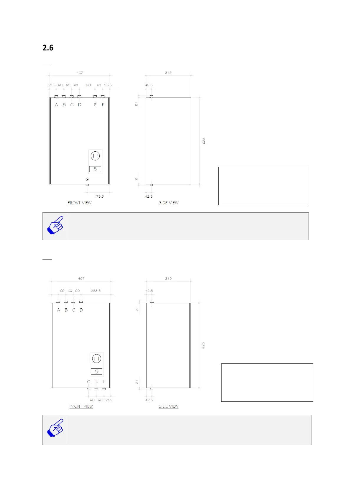 Minimum space requirements for access and servicing: Top: 190 mm (To allow for H-type