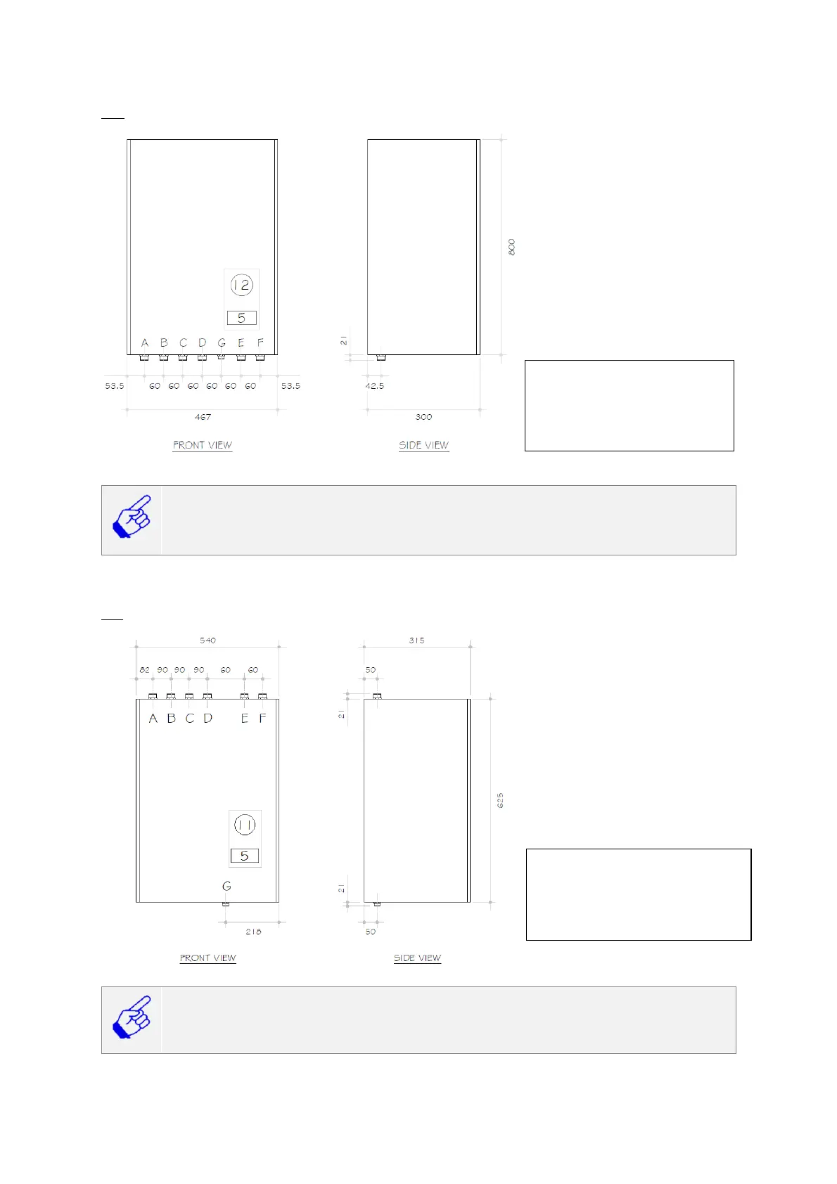 Minimum space requirements for access and servicing: Bottom: 190 mm (To allow for H-type