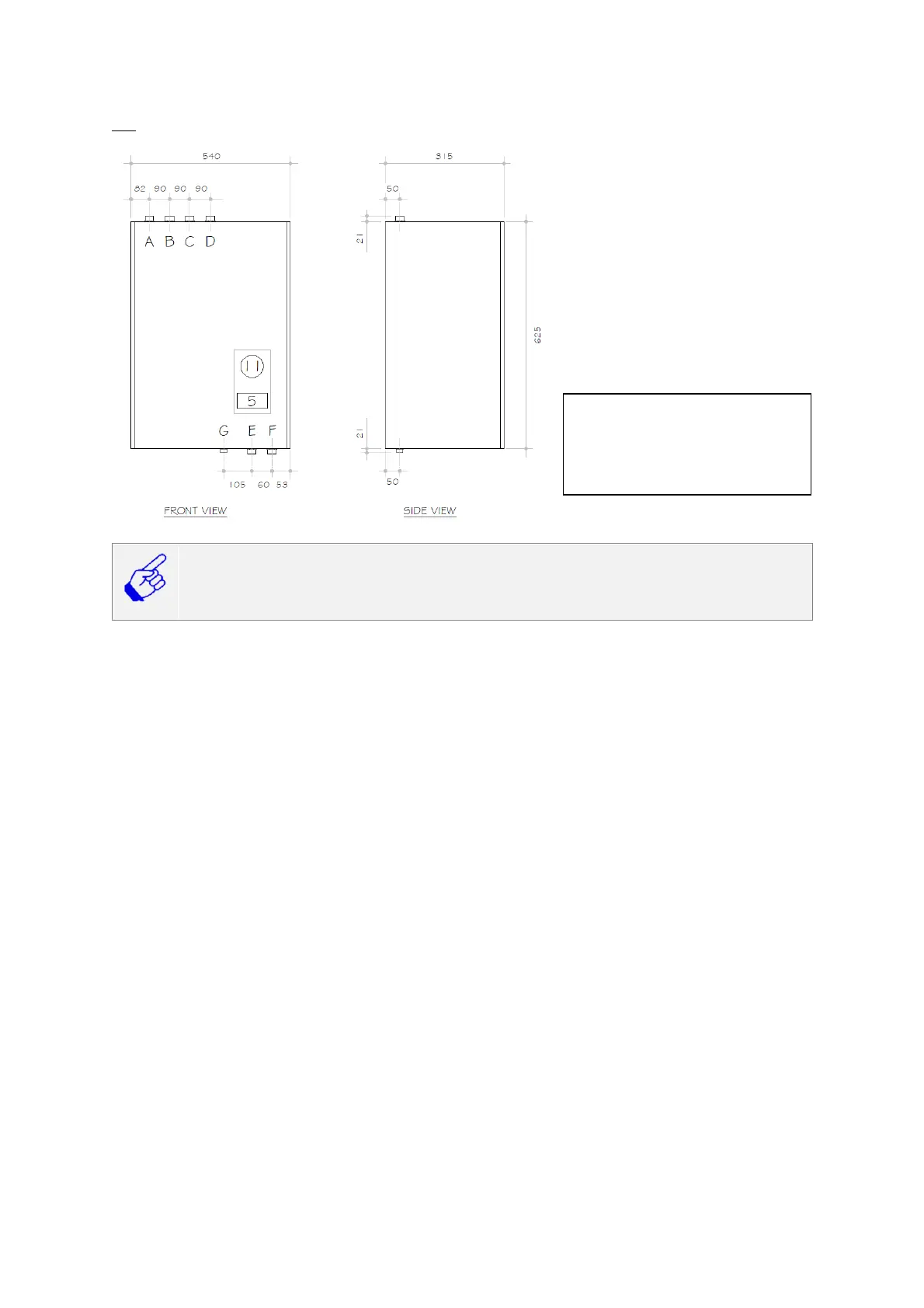 Minimum space requirements for access and servicing: Top: 250 mm (To allow for H-type