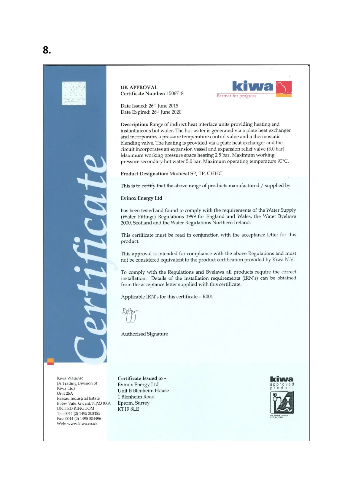KIWA CERTIFICATE