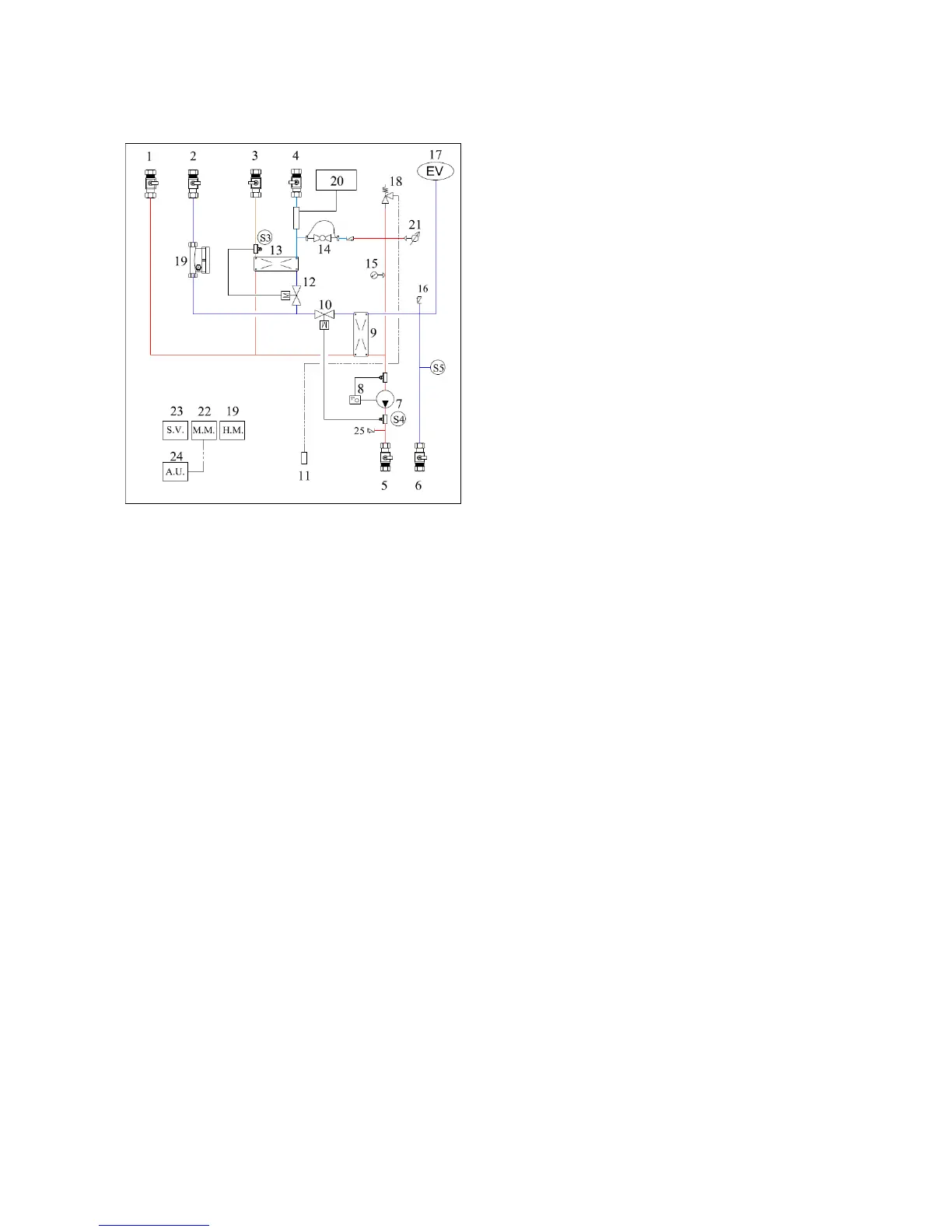 Pump (7) + Valve (10) OFF when S4>Tmmax (UFH = 45 – 55 °C)