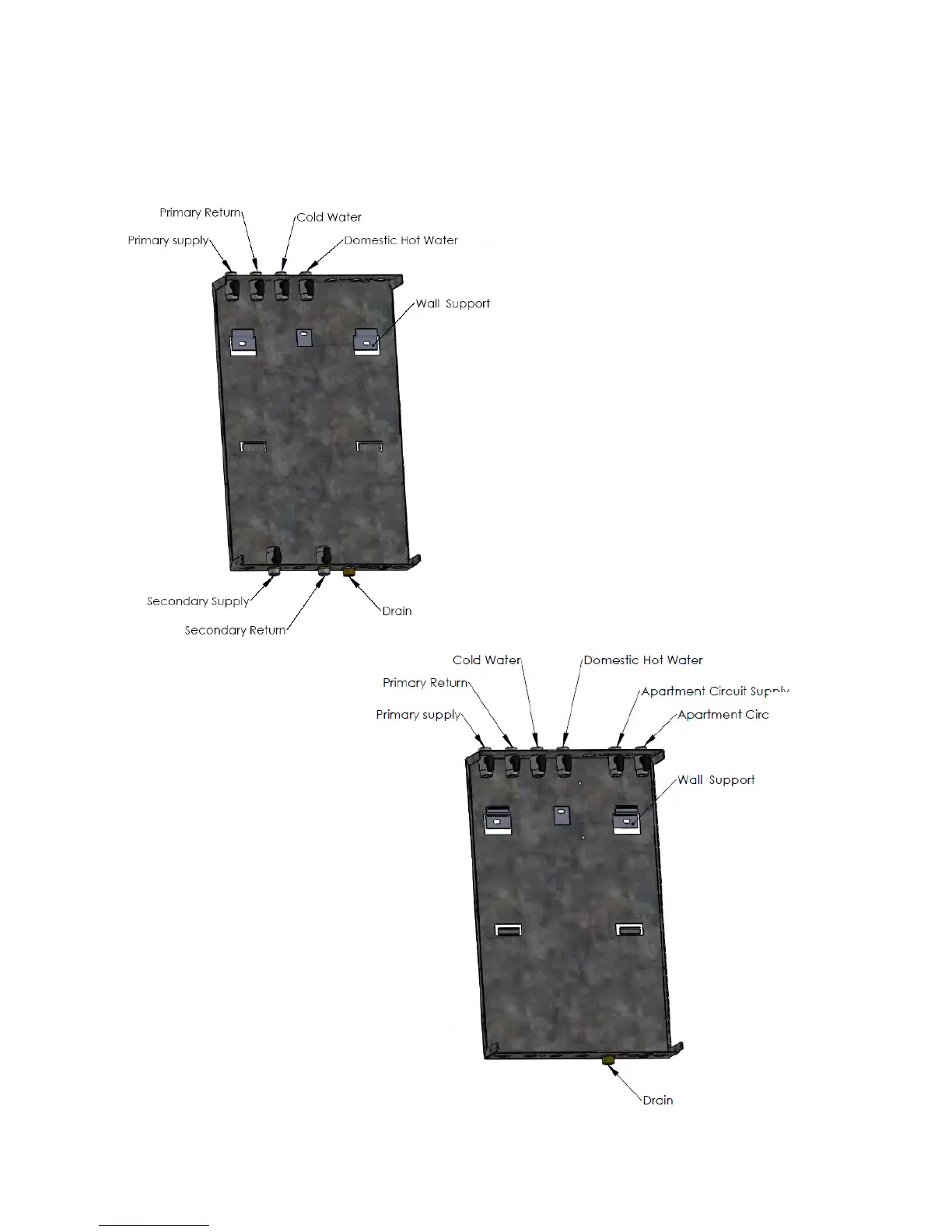 the upper and lower connections for the correct positioning of piping entering and leaving