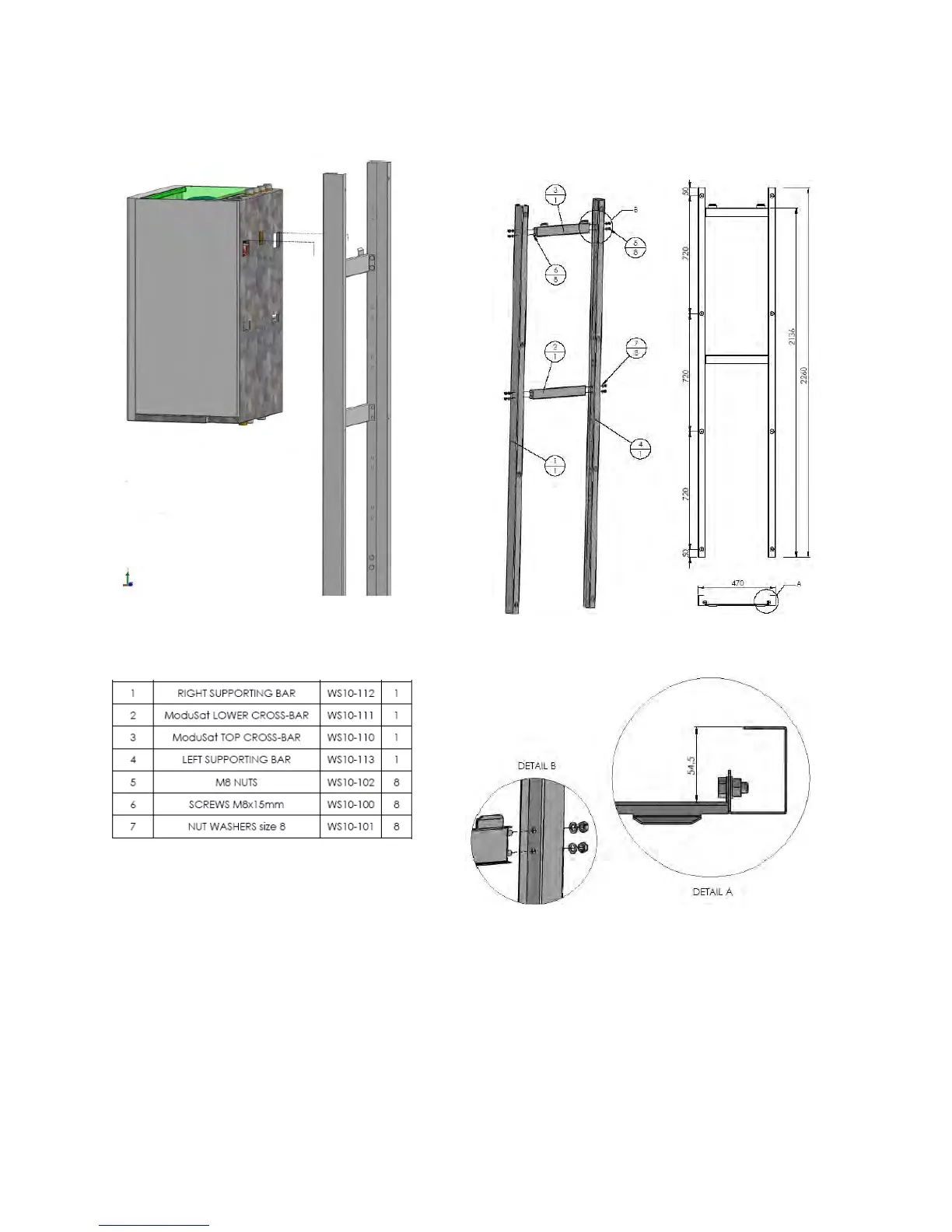 The wall must be able to take the weight of the ModuSat TP. In case it is not load bearing