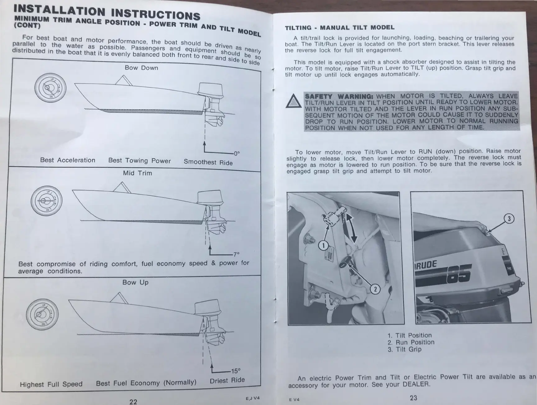 boat. The Tilt/Run Lever is located on the port stern bracket. This lever releases