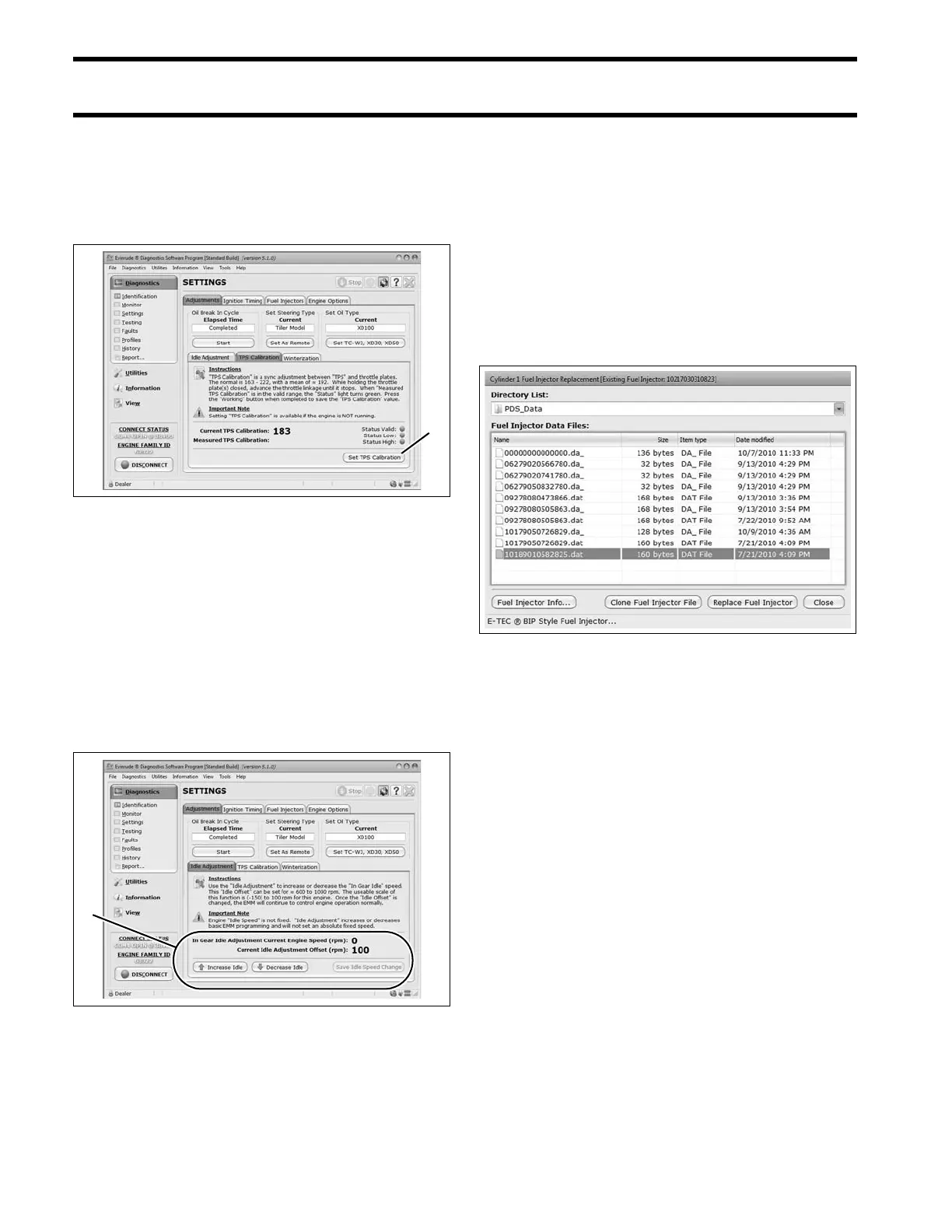 Evinrude E-Tec 40 HP - Tps Calibration; Idle Speed Control; Fuel Injector Servicing