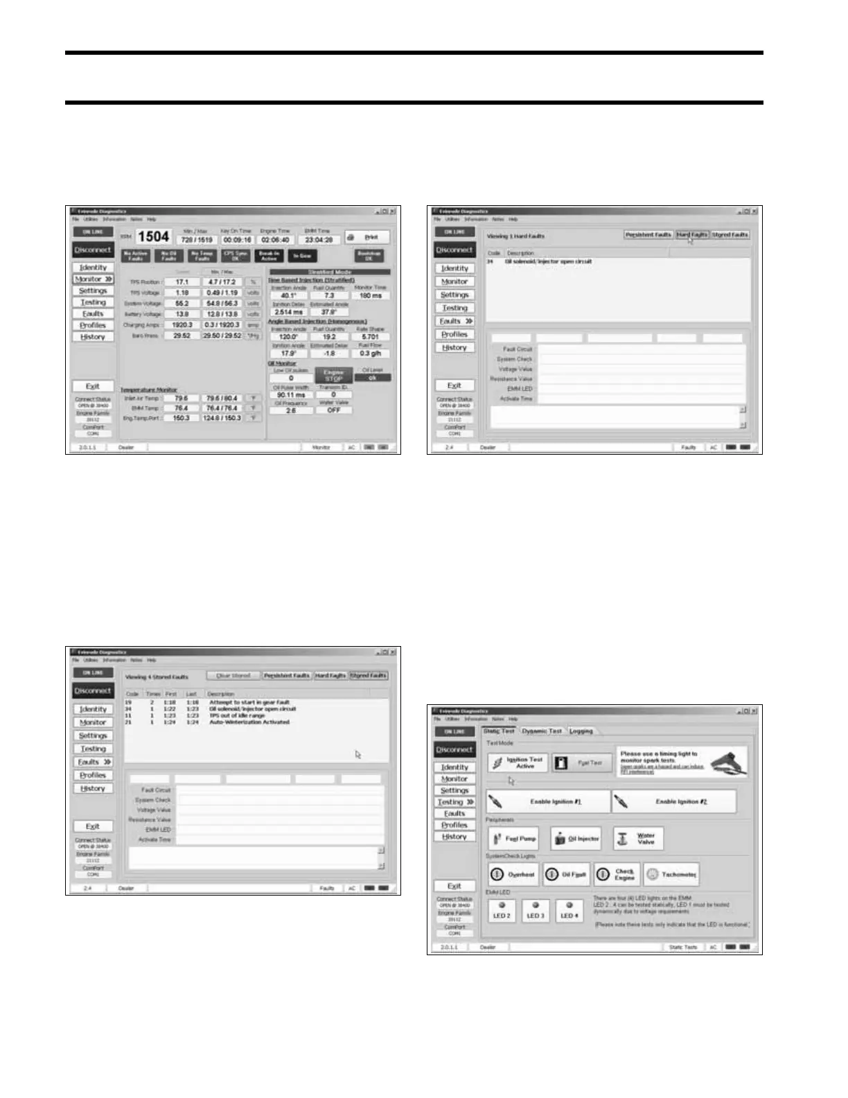 The Stored Faults screen of the diagnostics soft-
