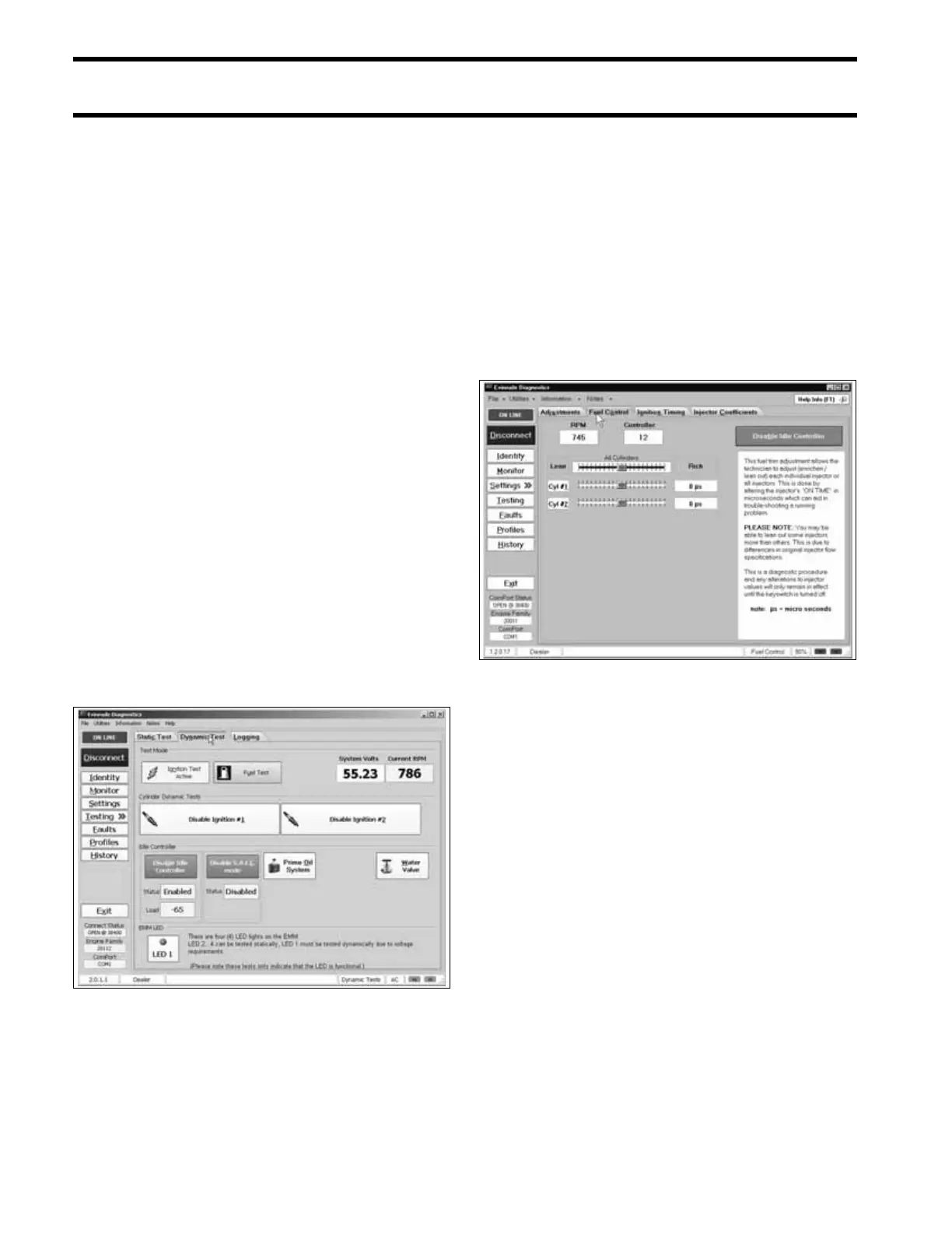 Evinrude E-TEC E50DPLSCB - Cylinder Drop Tests; Dynamic Tests; Fuel Control Adjustment; Inductive Amp Meter Test
