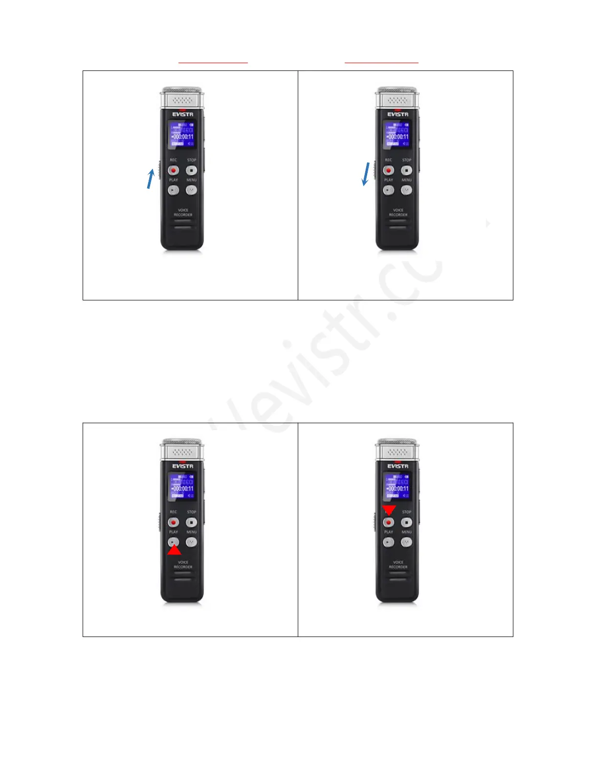 Press & hold PLAY button power on the voice recorder (NOTE: keep the left side POWER switch at