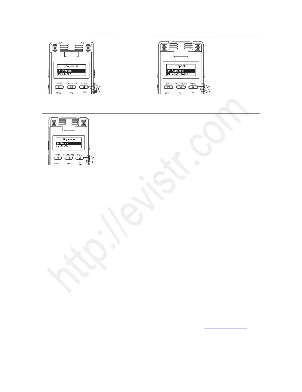 6) Press M (MENU) button, enter Repeat, and