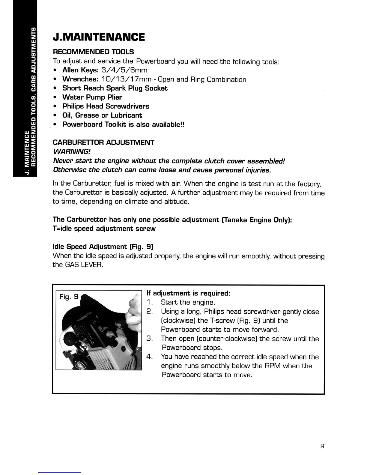 Evo 2x Big 50cc - Maintenance; Recommended Tools; Carburetor Adjustment; Idle Speed Adjustment