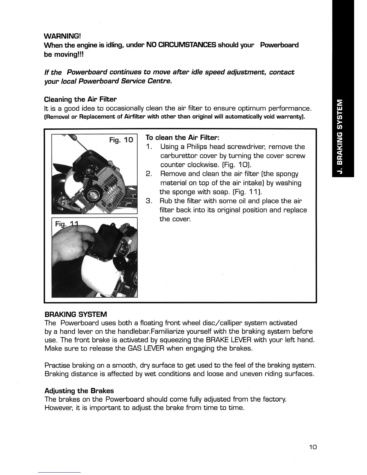 Evo 2x Big 50cc - Braking System; Cleaning the Air Filter; Adjusting the Brakes