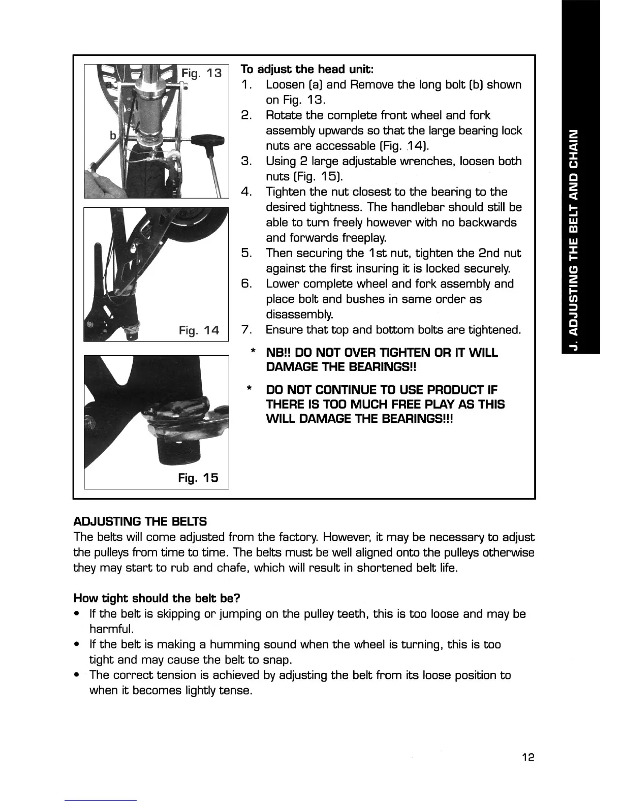Evo 2x Big 50cc - Adjusting the Belts; To Adjust the Head Unit; How Tight Should the Belt Be?