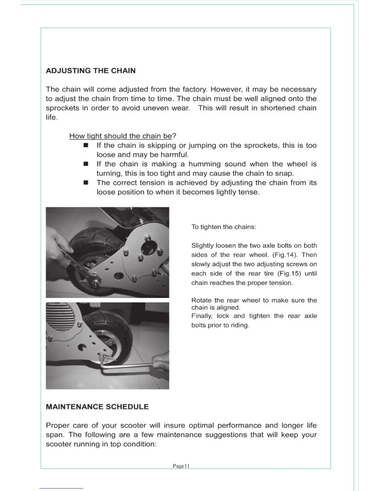 Evo 300 - ADJUSTING THE CHAIN; MAINTENANCE SCHEDULE