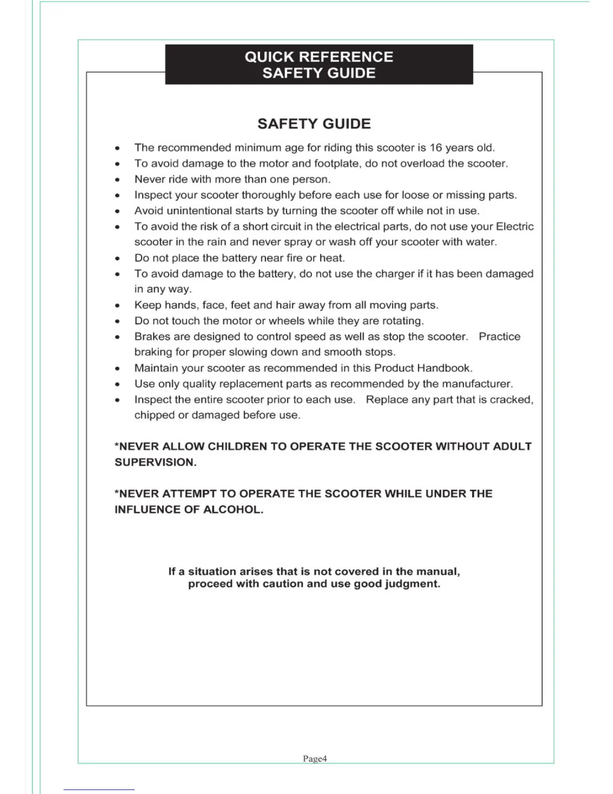 Evo 300 - QUICK REFERENCE; SAFETY GUIDE