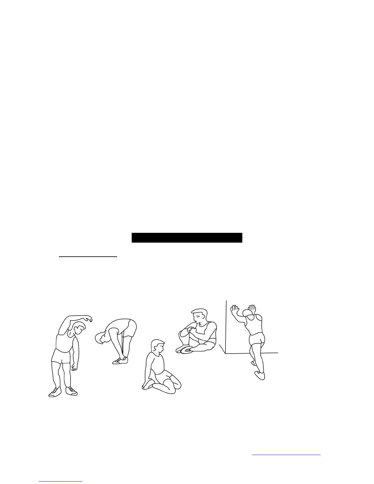 below. Each stretch should be held for approximately 30 seconds, do not force or jerk your muscles into