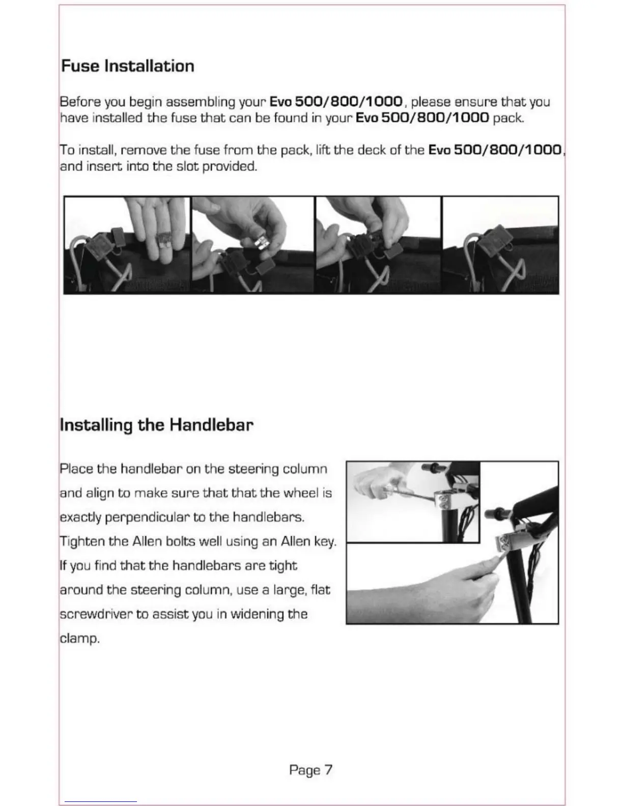 Evo 500 - Fuse Installation; Installing the Handlebar