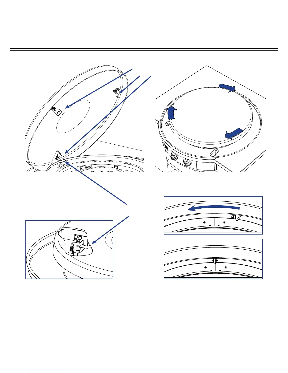 rotate the cook surface clockwise until the support tab is in line with the seam (B) and the