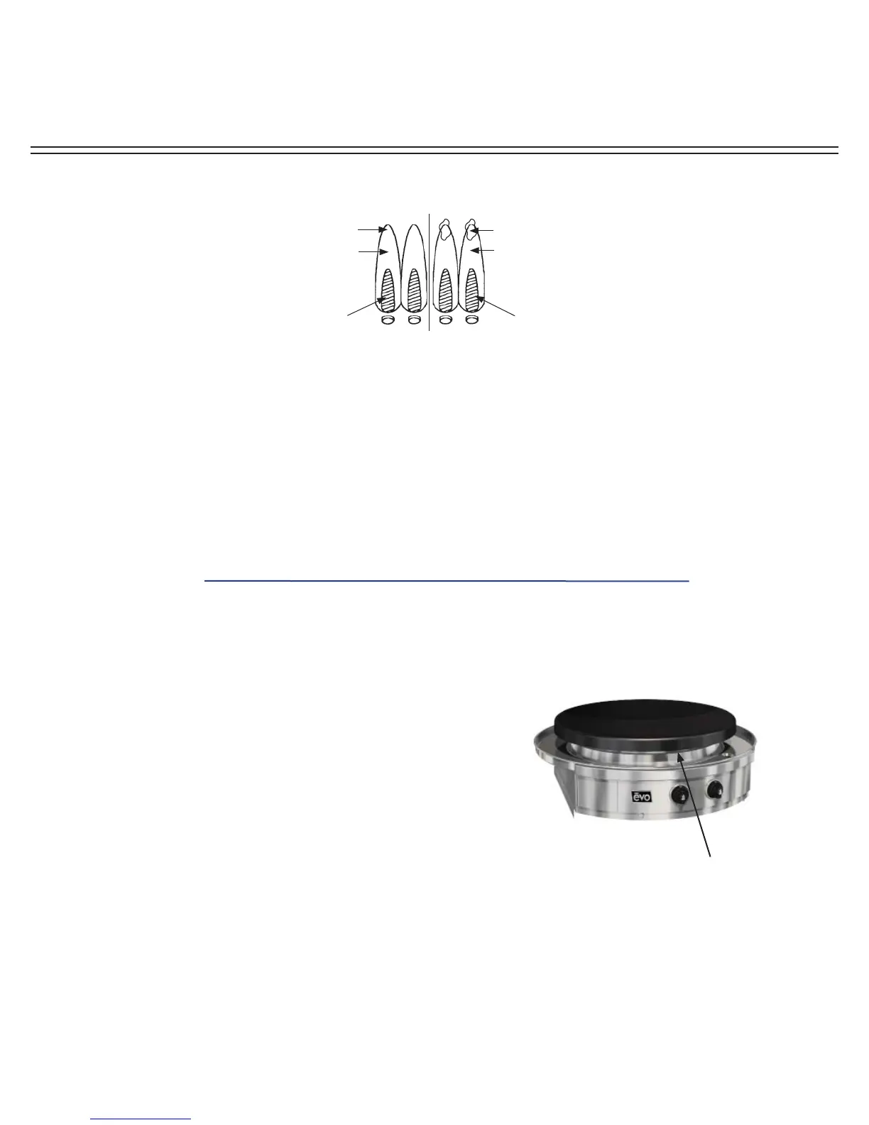 • Excessive yellow tipping of the burner fl ame (See diagram above).