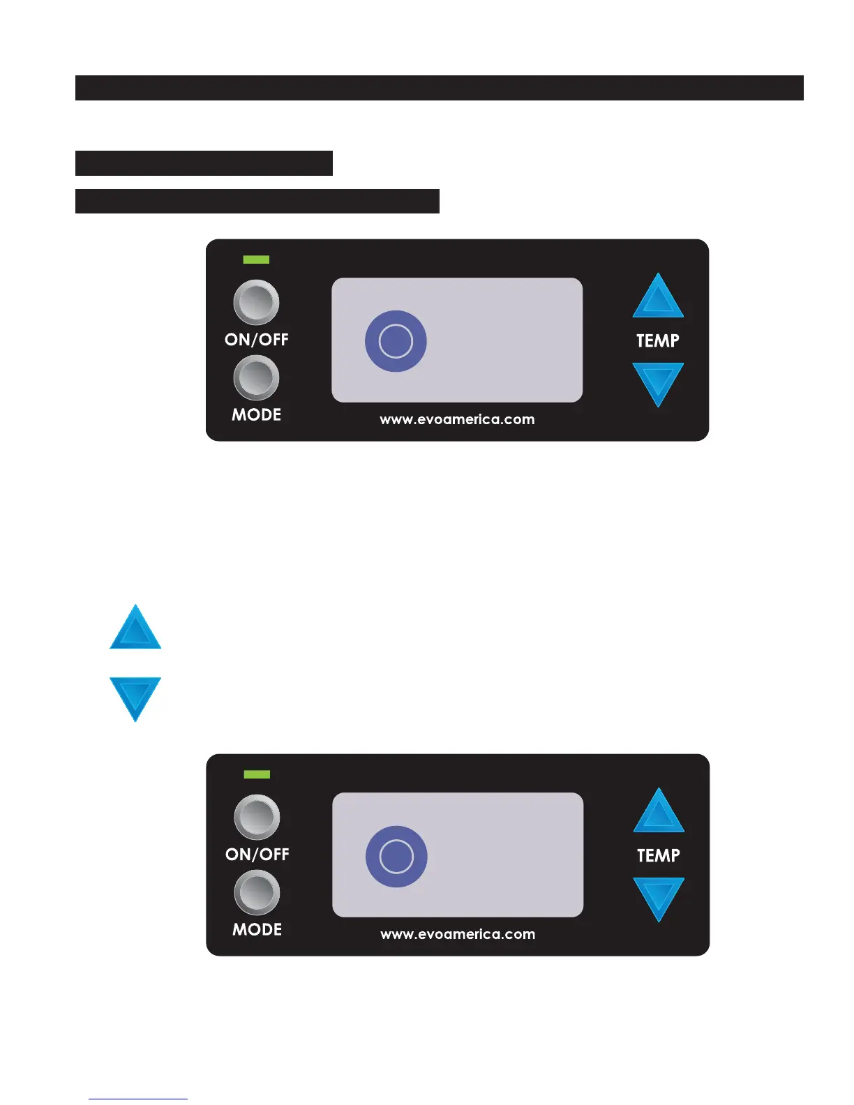 Pressing the blue UP arrow when the unit is powered ON increases the temperature as indicated