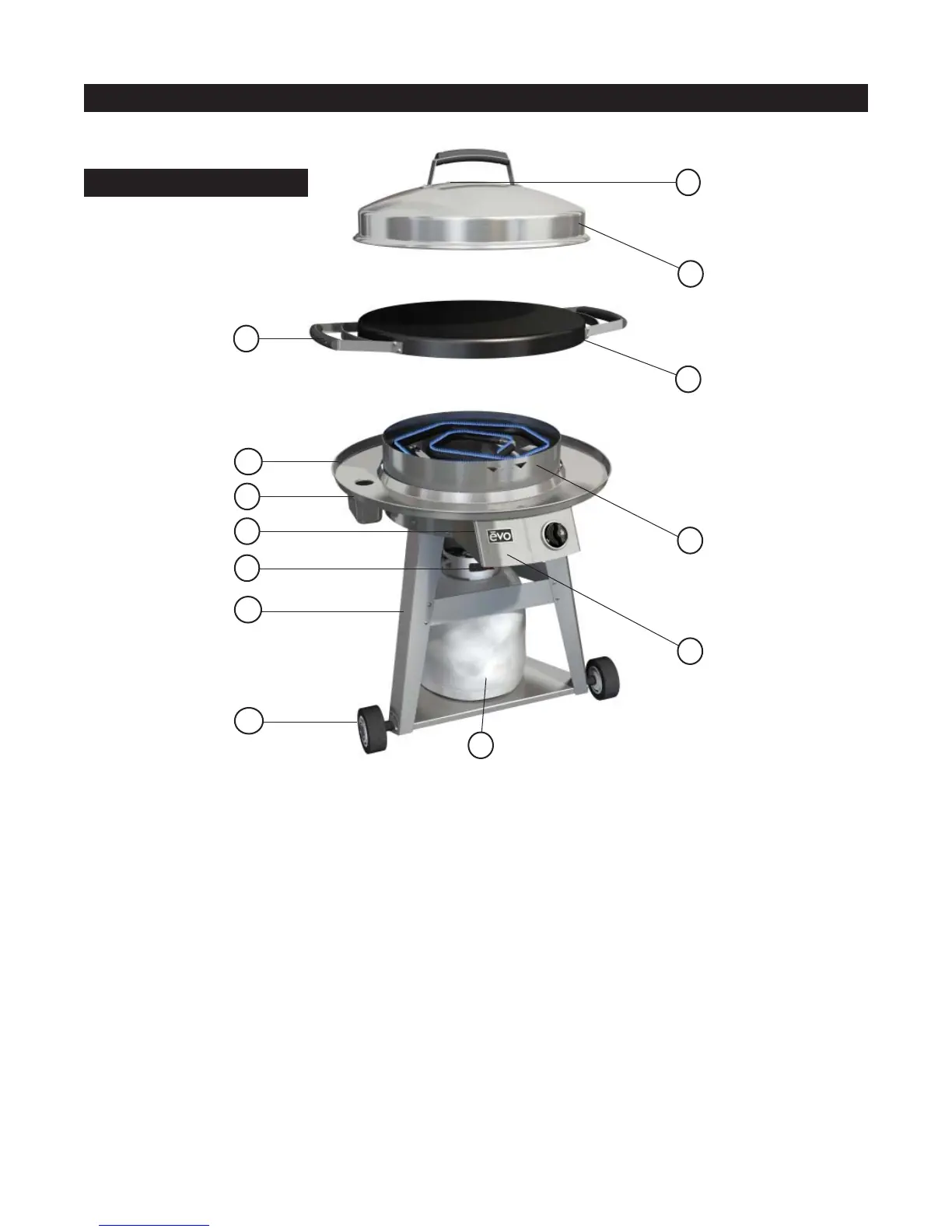 8 - Wheeled cart allows the Evo Companion Grill to be easily