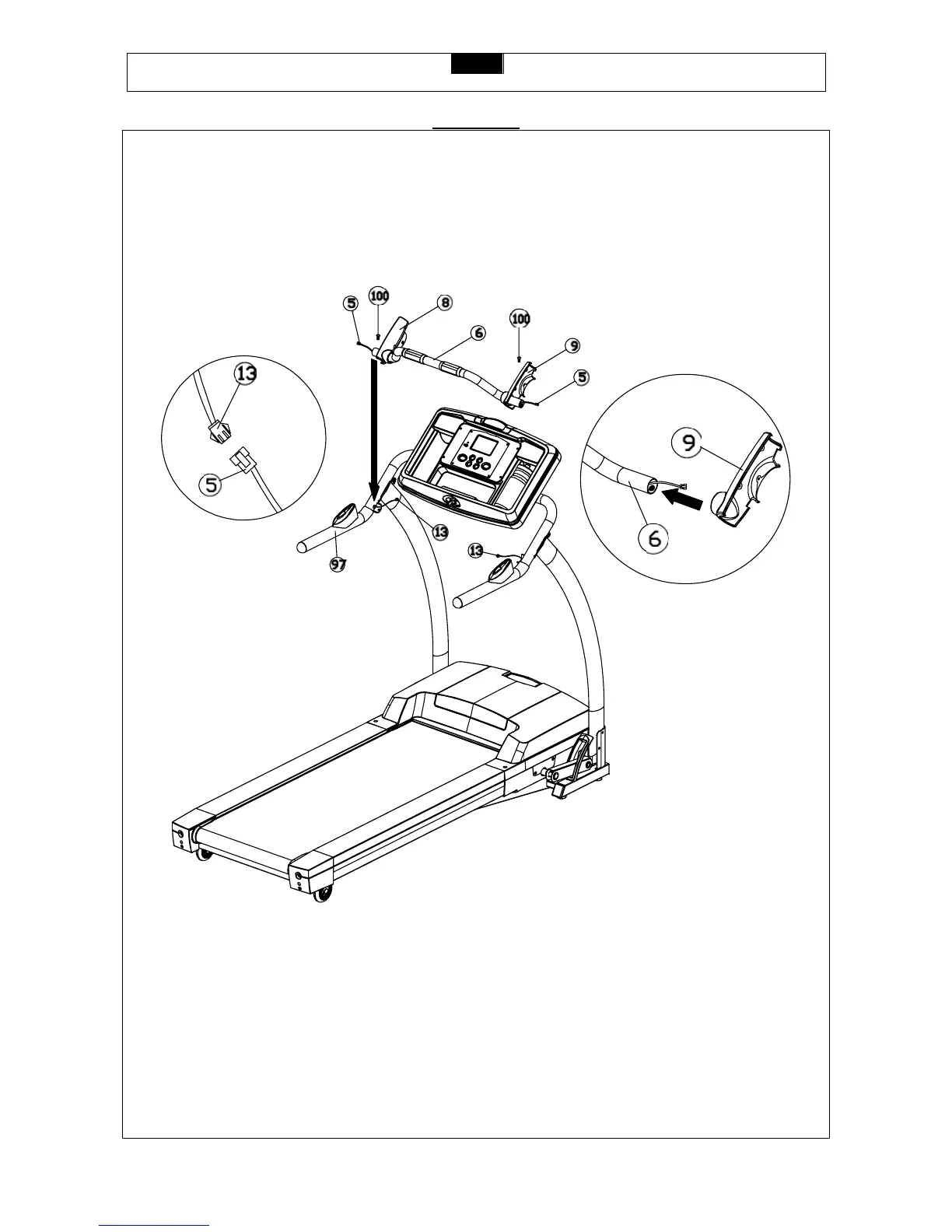 Secure the Front handlebar (6) to the Handlebar (97) using two M8 x 30mm Screw (100).