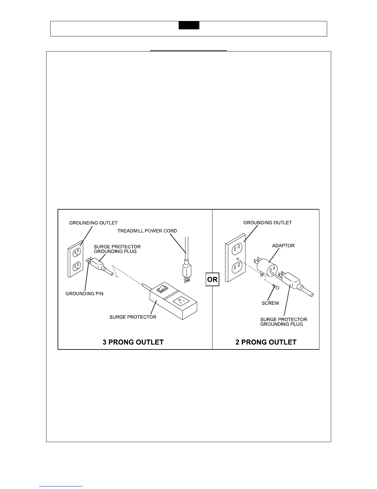 electric current, should the treadmill malfunction. This treadmill comes with an electrical cord having an equipment-