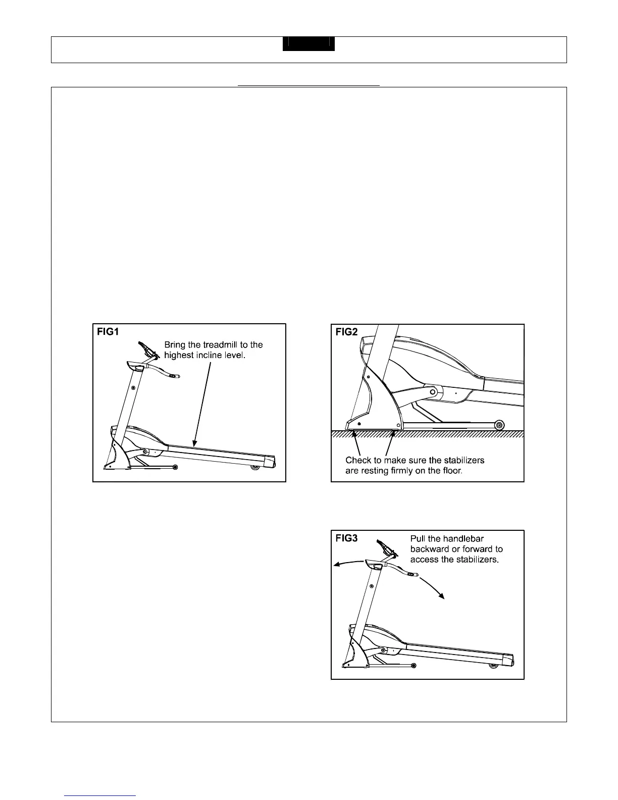 1. To perform the stabilizer adjustment you first need to bring the treadmill to the highest incline level as shown in FIG1.