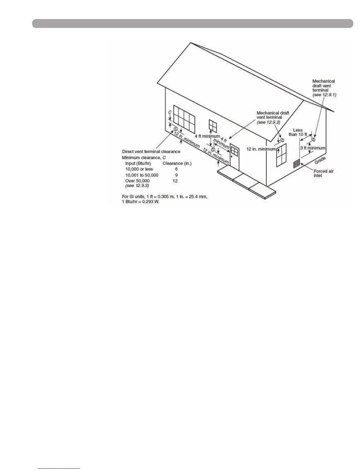 clearance. The bottom of the vent terminal and the air intake shall be located at least 12 in. (300 mm) above