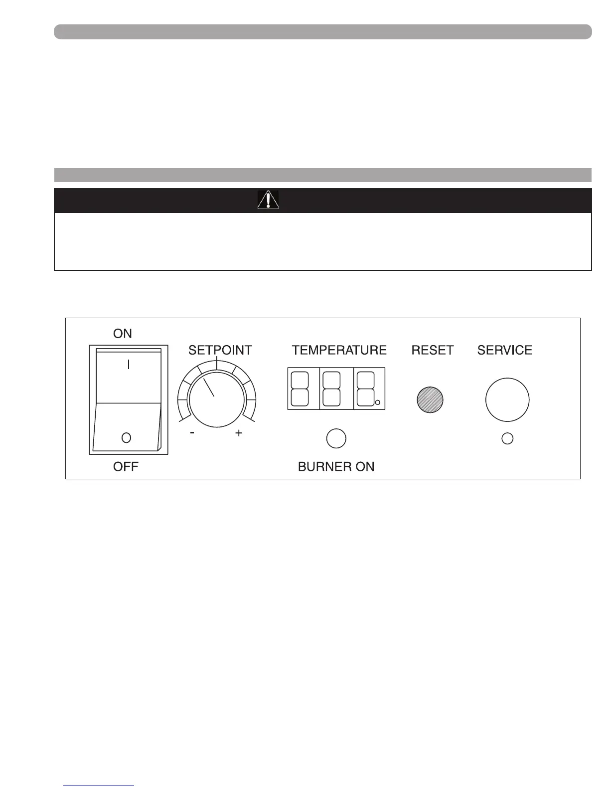 4) Green indicating light labeled BURNER ON; when this is light is on, the burner is ring.