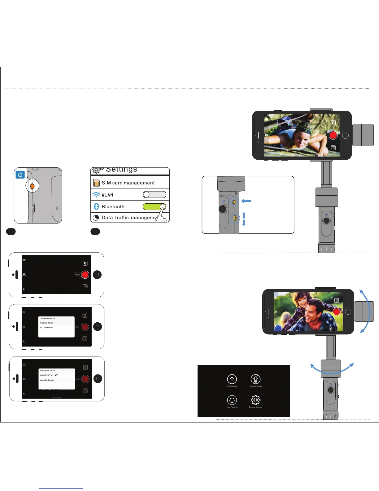For iOS users please search and download APP (”EVO GIMBALS