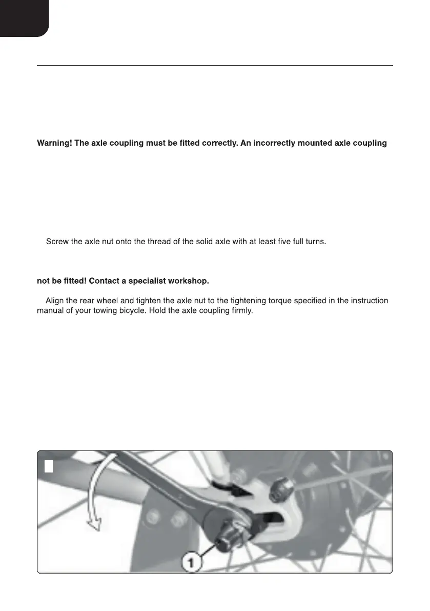 Warning! The rear wheel must be correctly fixed after mounting the axle coupling.An