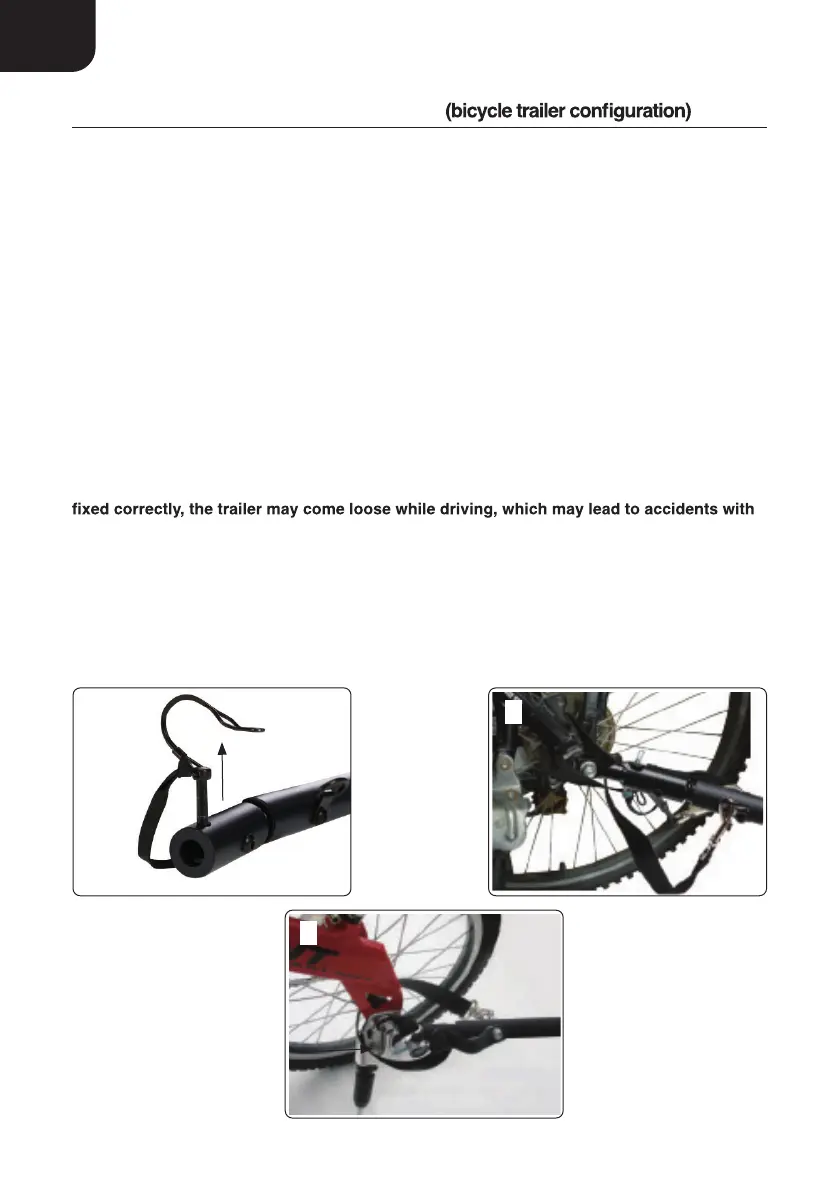 drawbar. Make sure that the safety strap does not get caught in the spokes or disc brakes.