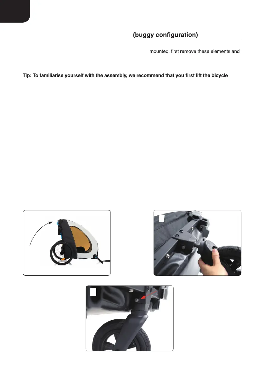 Caution! Never ride with a mounted buggy wheel when using the trailer as a bicycle trailer! The
