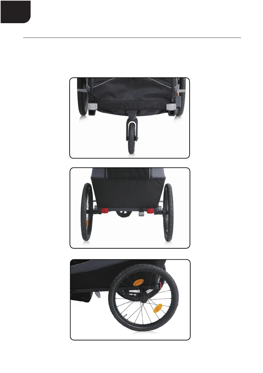 at the rear of carrier. 4pcs orange reflectors should be inserted to the spokes of rear wheels, 2pcs on each