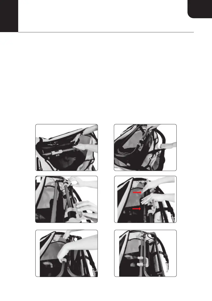 1. Reach into the folded bicycle trailer and pull the handlebar.