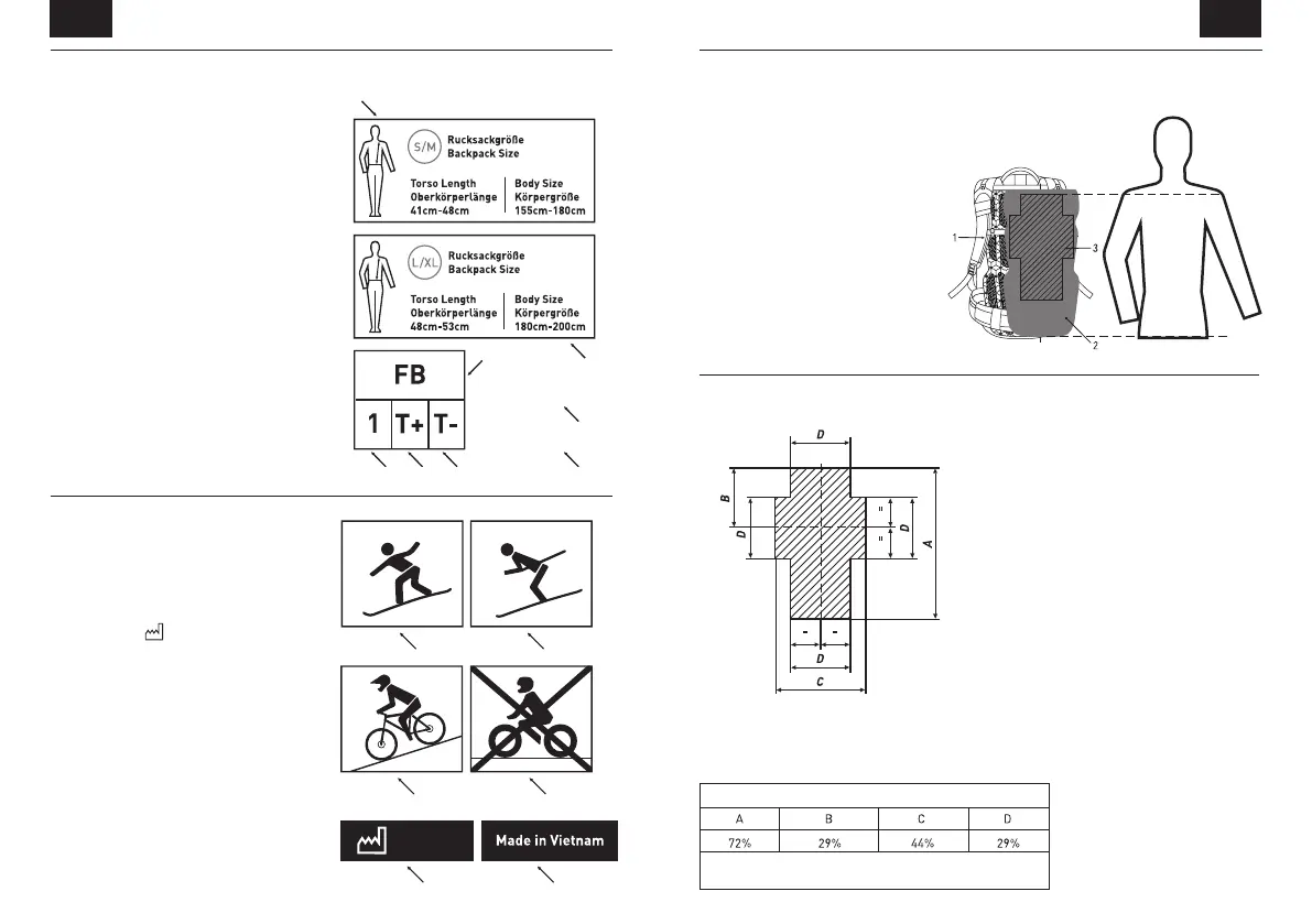 1 I Longitud del torso, rango de tallas