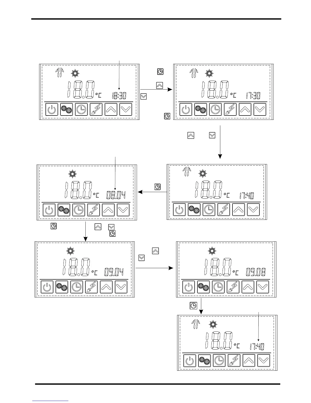 parameter flash at this time. Press " " again and the hour parameter flashes. Set the time