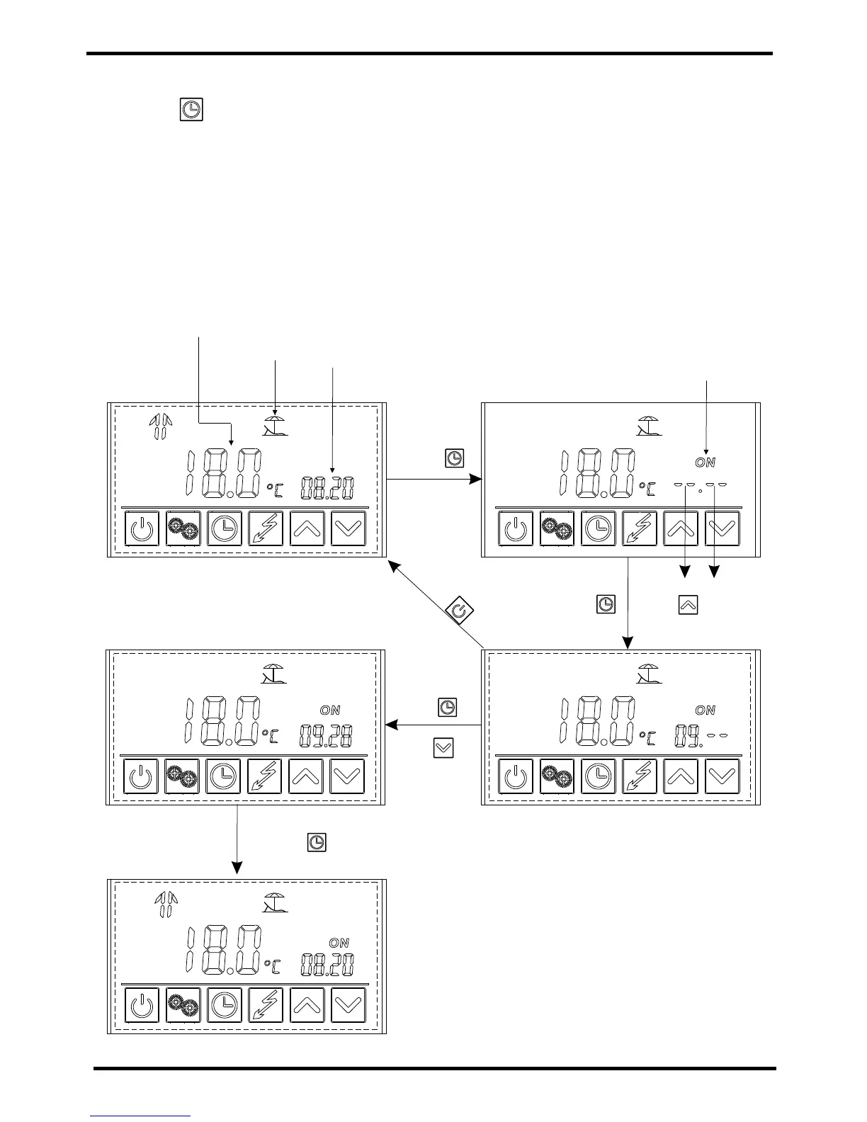 Press " " and hold for 2s to enter into the timer setting interface. The symbol "ON "
