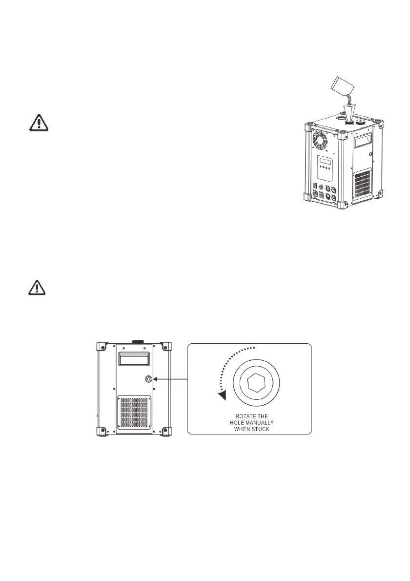 • Pamiętaj o napełnieniu prochu przez odpowiedni otwór na górze urządzenia i przy wyłączonym