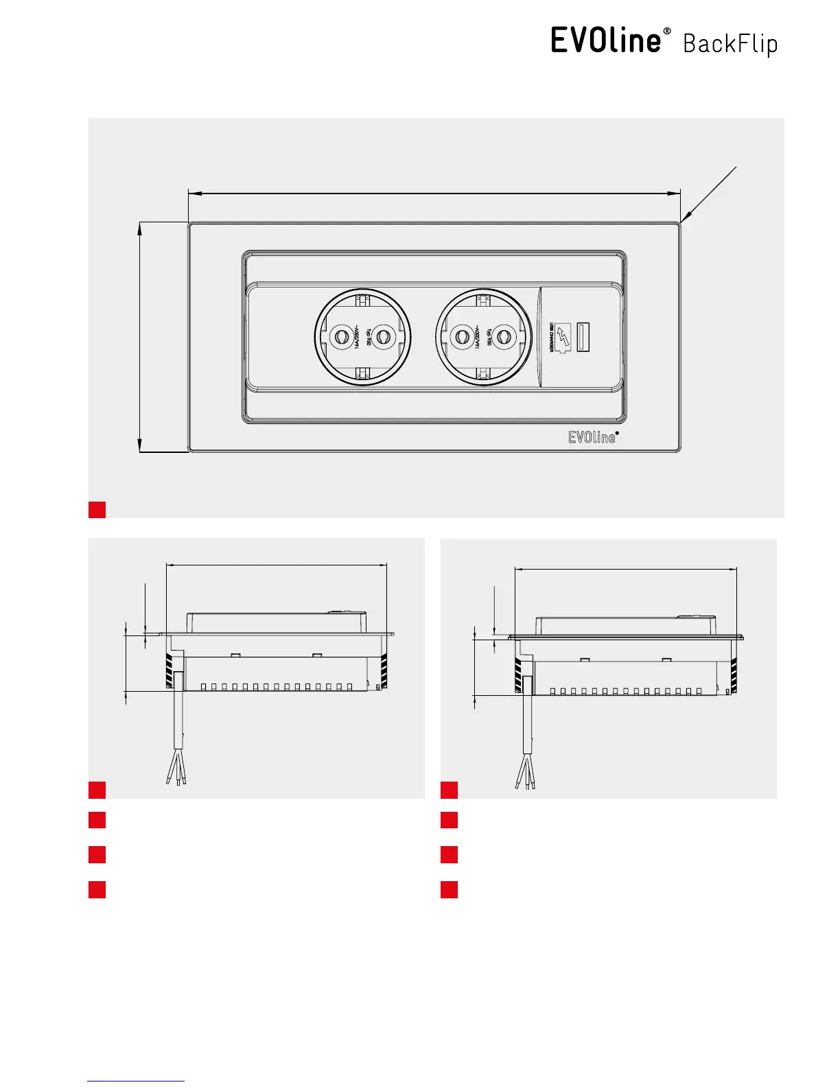 EVOline BackFlip - General Dimensions; Overall Dimensions; Dimensions for Stainless Steel Surface; Dimensions for Glass Surface