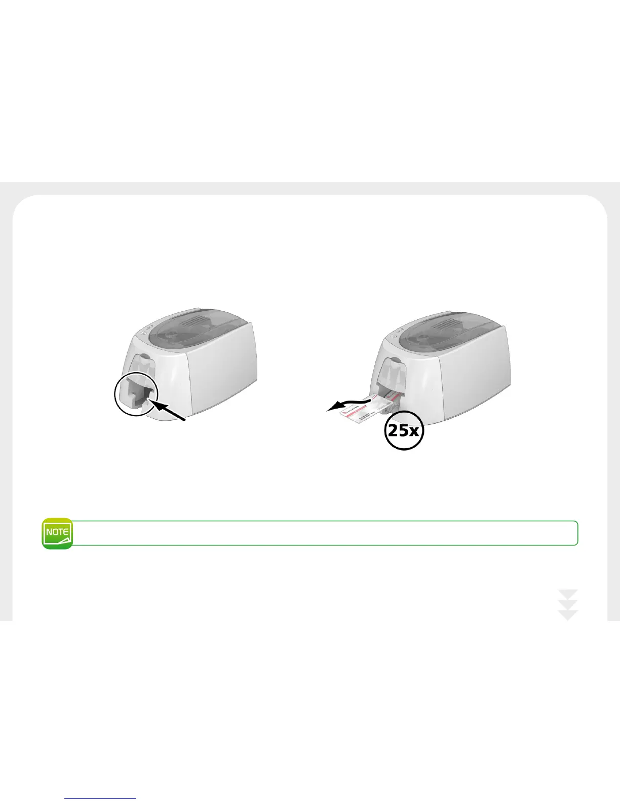 Once the print cycle is complete, the cards are issued into the output hopper below the card feeder. This output hopper is designed to collect the printed cards. The printer is