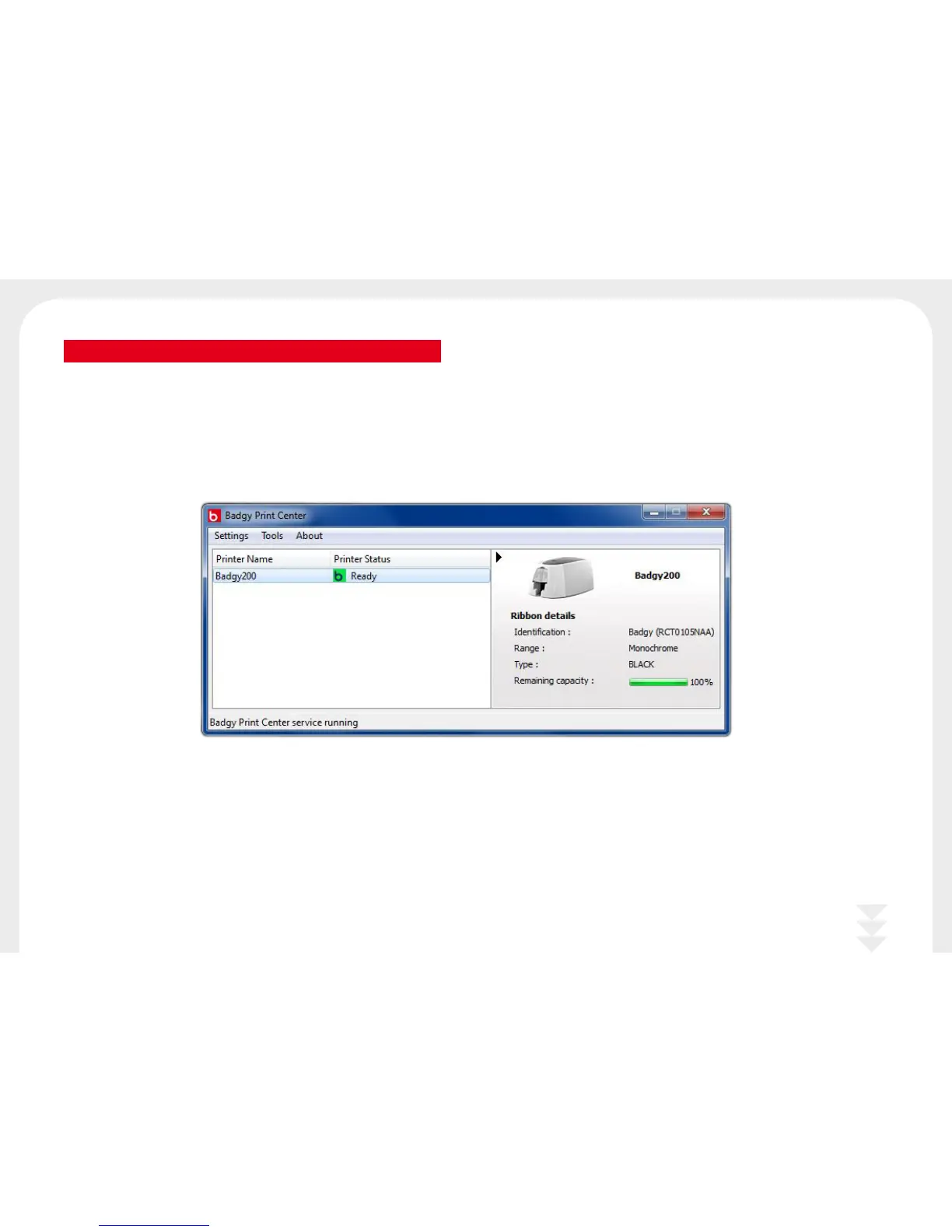 A graphic application called Badgy Print Center is available to help you change certain predefined settings, if needed.