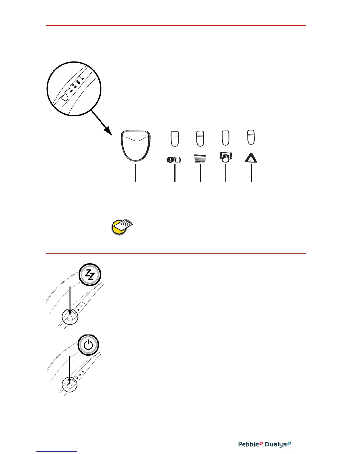 The Pebble and Dualys printers may be left in stand-by at any time by pressing a