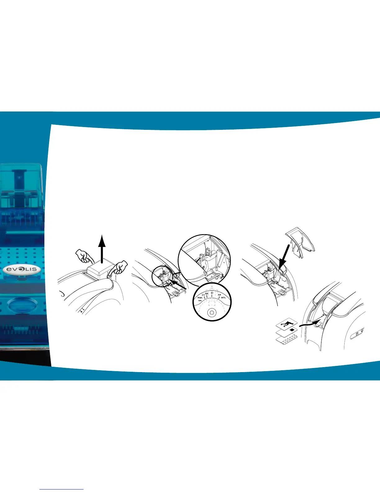 Place the manual card feeder in the printer as shown. Then press on the upper section of the feeder until it clicks.