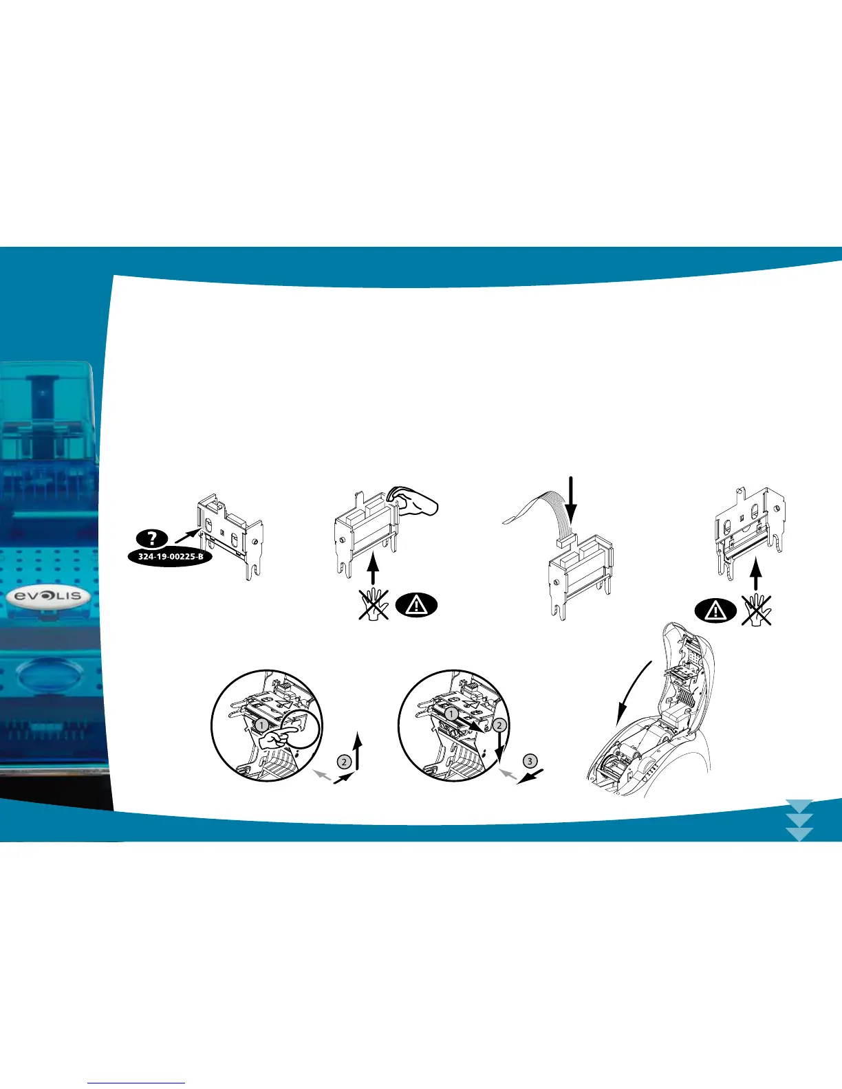 Pick up the new print head and turn it towards you, with the white connector visible.