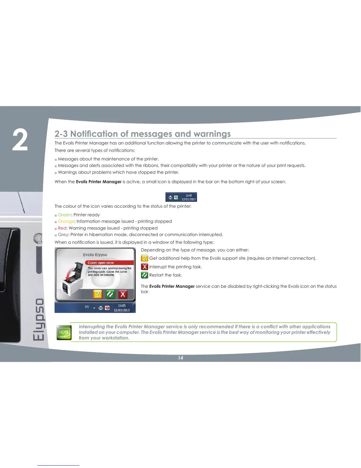 installed on your computer. The Evolis Printer Manager service is the best way of monitoring your printer effectively