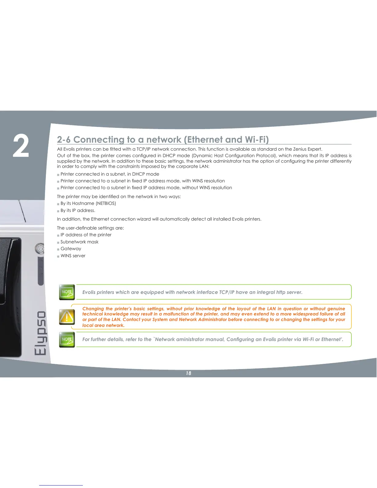 )RUIXUWKHUGHWDLOVUHIHUWRWKHC1HWZRUNDPLQLVWUDWRUPDQXDO&RQÀJXULQJDQ(YROLVSULQWHUYLD:L)LRU(WKHUQHW·