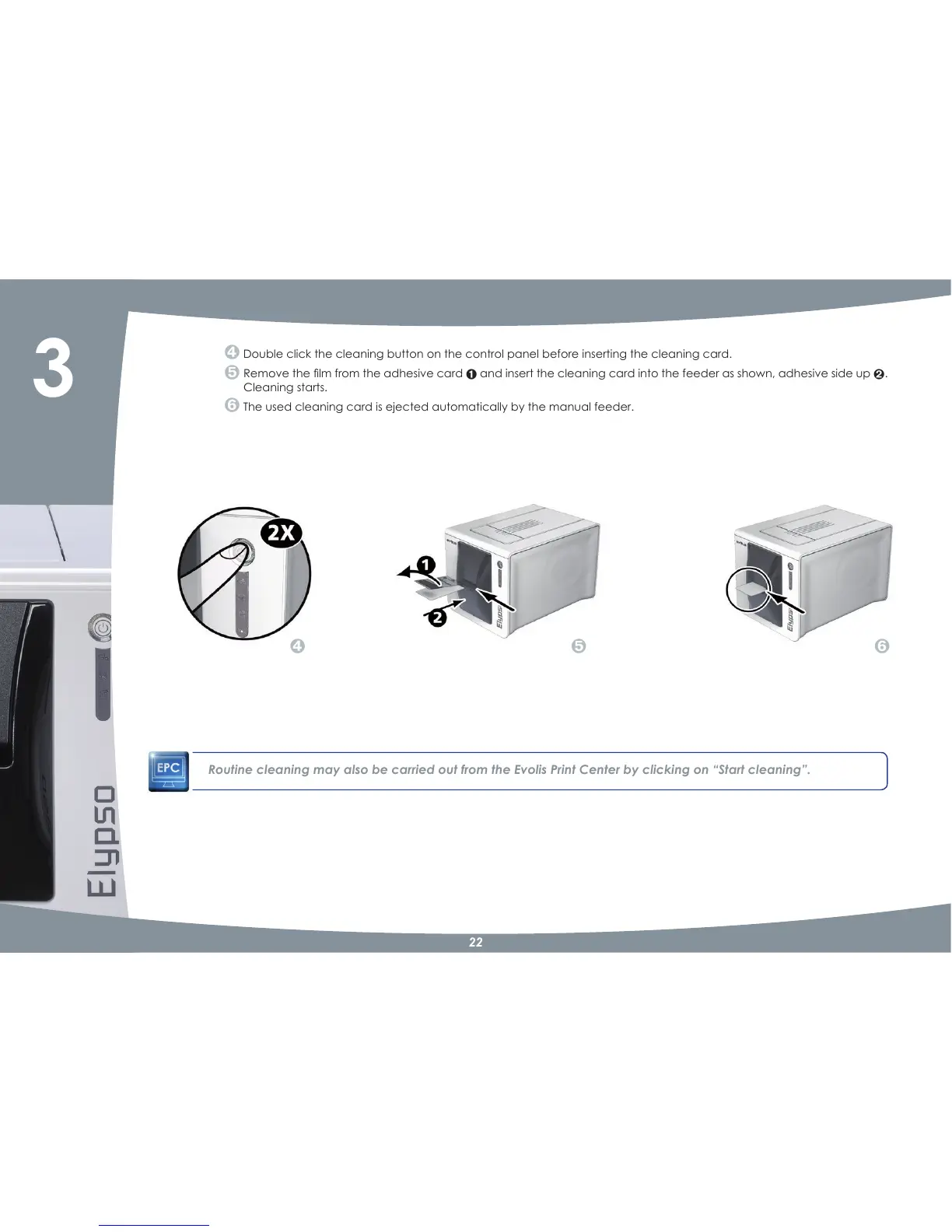 The used cleaning card is ejected automatically by the manual feeder.